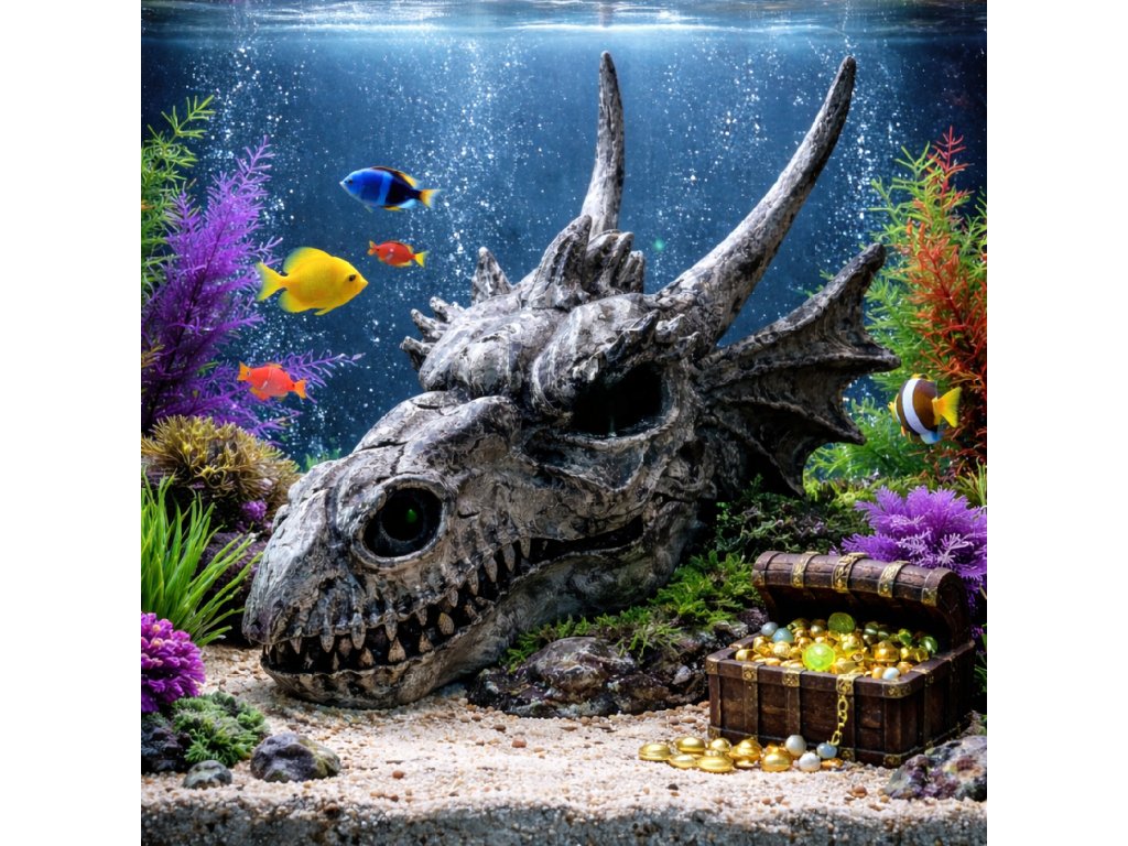 Táto dekorácia je ideálnou voľbou pre akvaristov, ktorí chcú vytvoriť mystickú, fantasy alebo tematickú atmosféru v akváriu.