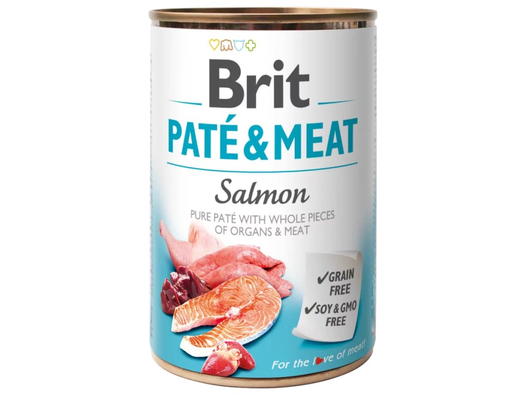 🐾 Brit Paté & Meat Salmon – šťavnaté krmivo s lososom pre zdravé trávenie, lesklú srsť a výbornú kondíciu vášho psa.