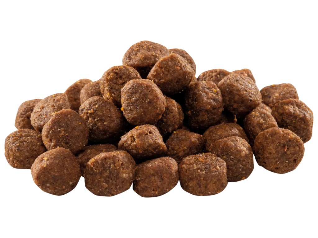 Hrubý proteín 31 %, obsah tuku 18 %, vlhkosť 10 %, hrubý popol 6,8 %, hrubá vláknina 2 %, vápnik 1,4 %, fosfor 1 %, omega-3 0,25 %, omega-6 2,2 %.