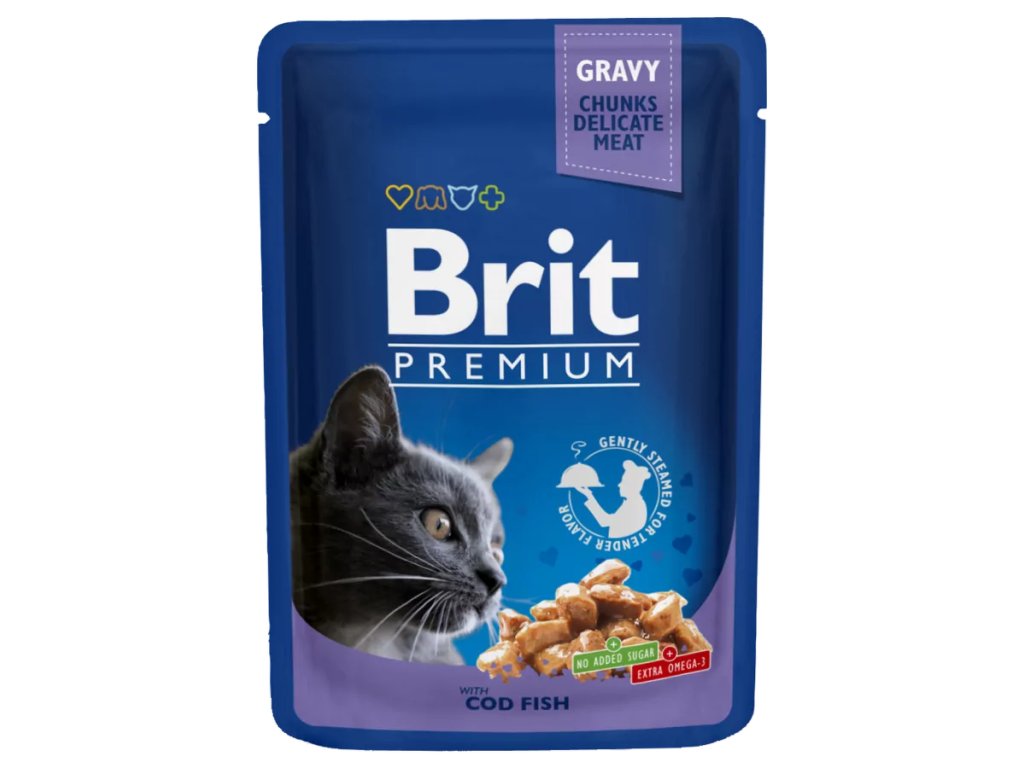 🐾 BRIT Premium Cat Cod Fish kapsička je ideálnou voľbou pre každodenné chutné a výživné jedlo, ktoré podporuje zdravie, vitalitu a krásnu srsť vašej mačky.