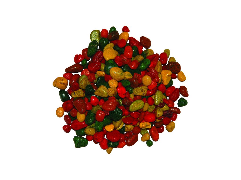 Farebný dekoratívny štrk 4–8 mm na oživenie akvária, vhodný výhradne na dekoráciu, s jednoduchou údržbou a jasnými farbami.