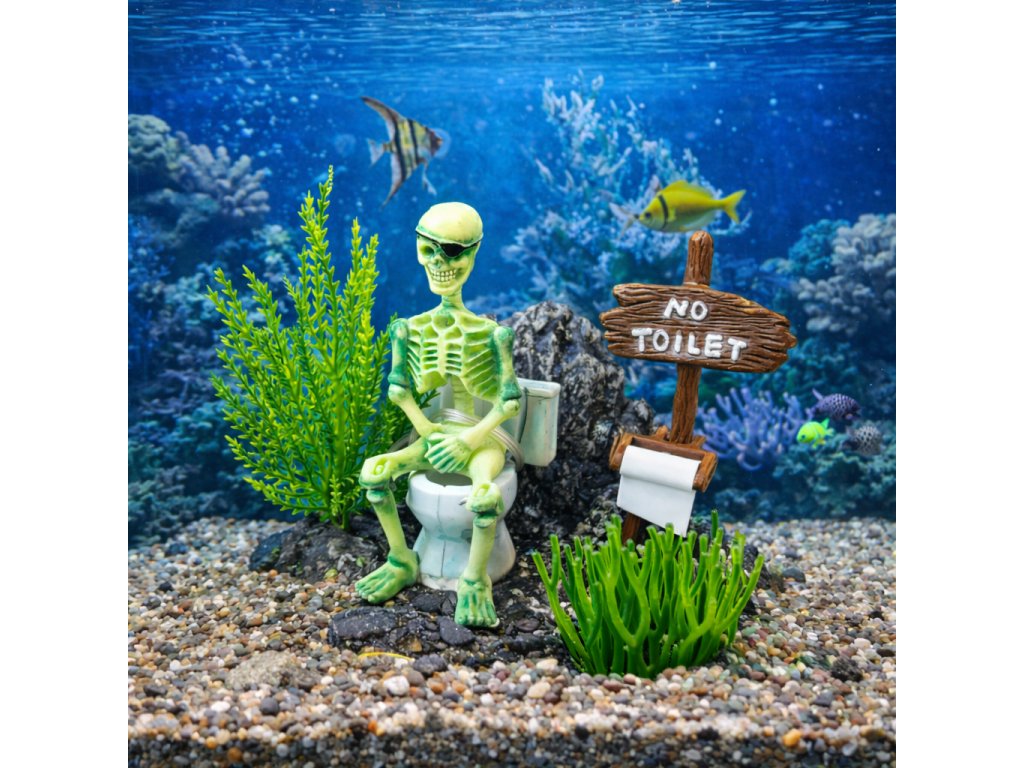 Dekoratívna akváriová dekorácia – Kostra na toalete (pohyblivá)