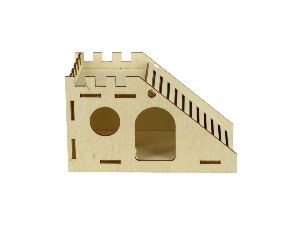 Praktický drevený domček, ktorý poskytne škrečkovi pokojné a bezpečné miesto na oddych.
