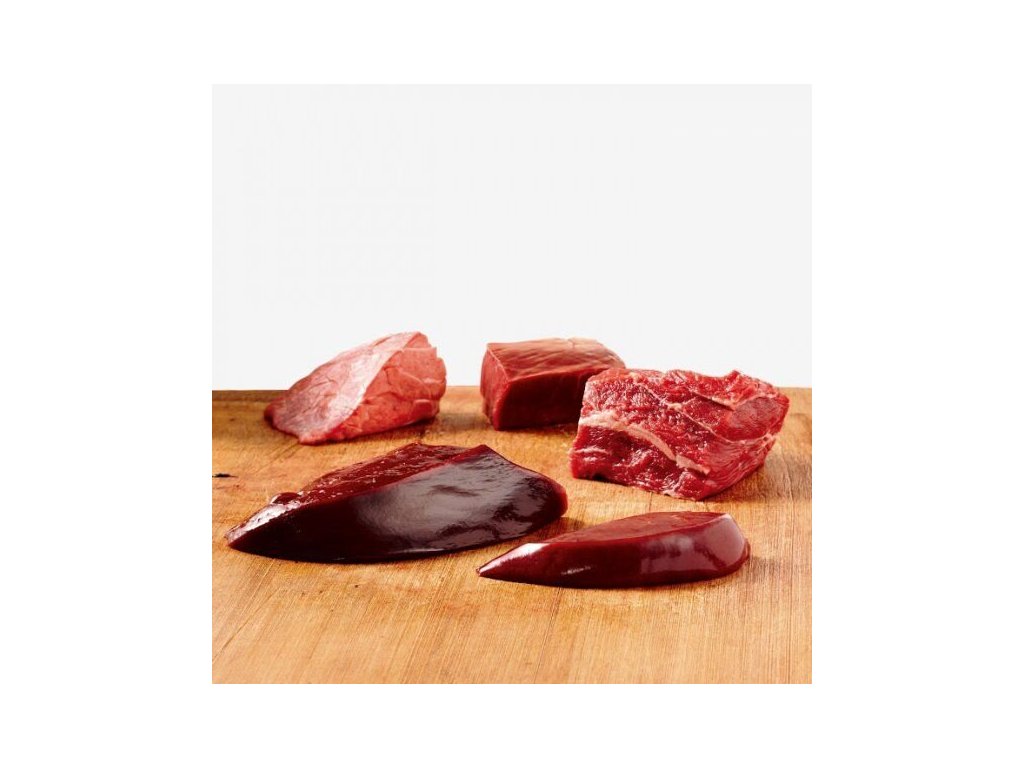 41 % hovädzie mäso (srdce, mäso, pečeň, vemeno, obličky), 29 % hovädzí vývar, 27 % jahňacie (pľúca, bachor, pečeň), minerálne látky, svetlicový olej.