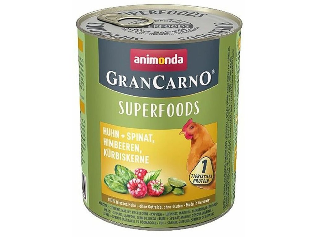 GRANCARNO Superfoods - kuracie, špenát, maliny, tekvicové semienka 800g