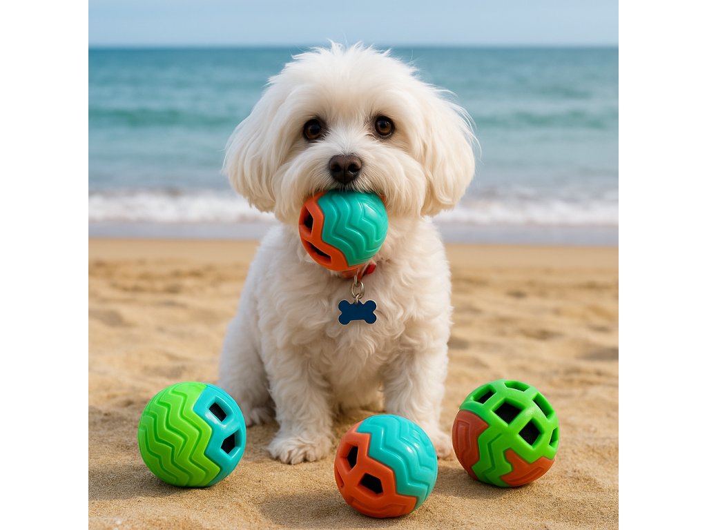 Táto gumená lopta so šušťavou výplňou poskytuje skvelú kombináciu zábavy, zvuku a pohybu – váš pes si ju zamiluje! 🐕💚