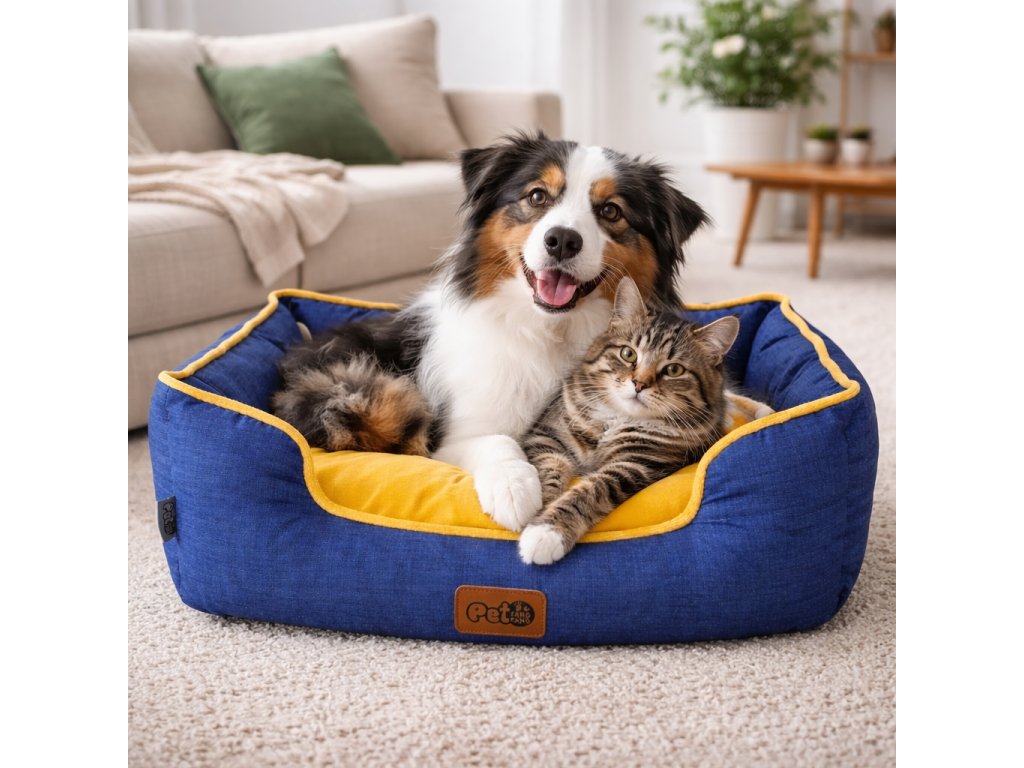 Mäkký pelech pre psa alebo mačku – stredný 55 × 50 × 16 cm (modro-žltý)