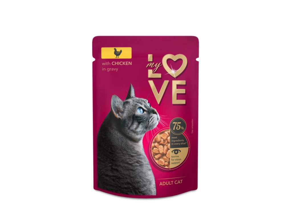 My Love s kuracím mäsom v jemnej omáčke je chutné a výživné krmivo, ktoré si vaša mačka rýchlo obľúbi.