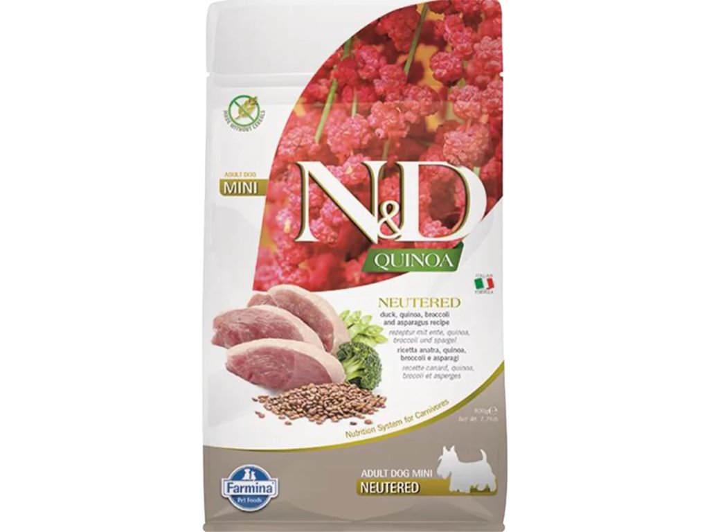 ND Dog GF Quinoa Adult Mini Neutered kačka, brokolica a špargľa 0,8kg