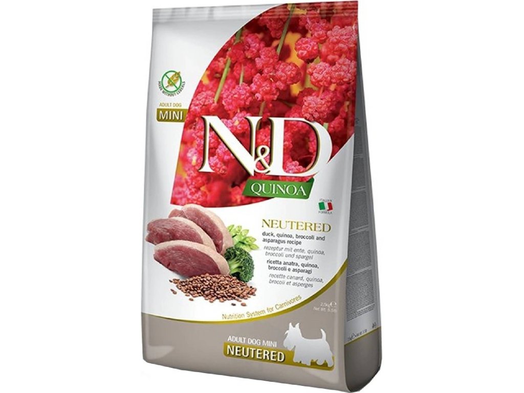 ND Dog GF Quinoa Adult Mini Neutered kačka, brokolica a špargľa 7kg