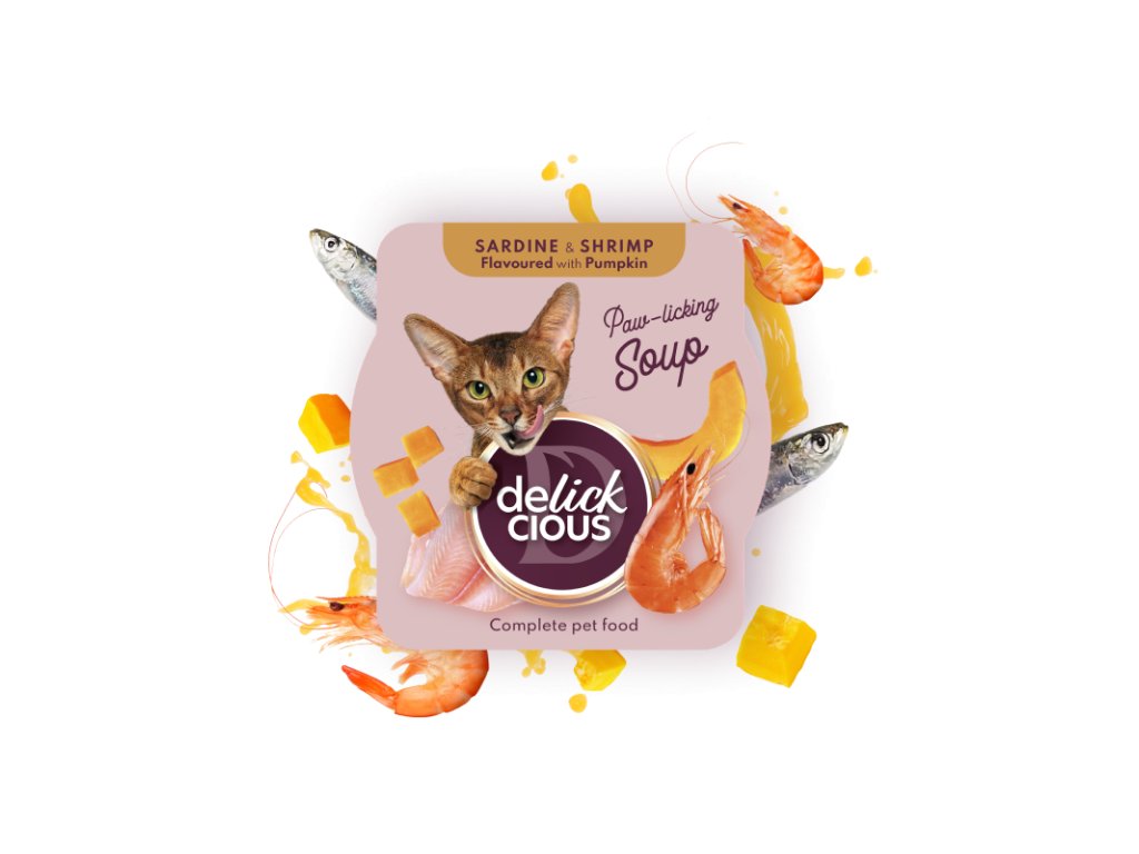 Polievka DELICKCIOUS™ ADULT CAT sardinkova s krevetami a tekvicou 80g