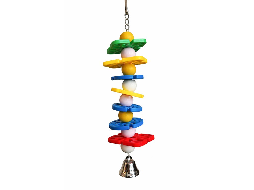 Závesná hračka pre vtáky so zvončekom – farebná (23 cm)